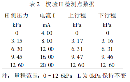 (2)將L 保持在0kPa , 不斷升高H 檢測點的壓力, 達到滿量程的上限值時, 校準滿量程。從而確定量程的上限值。