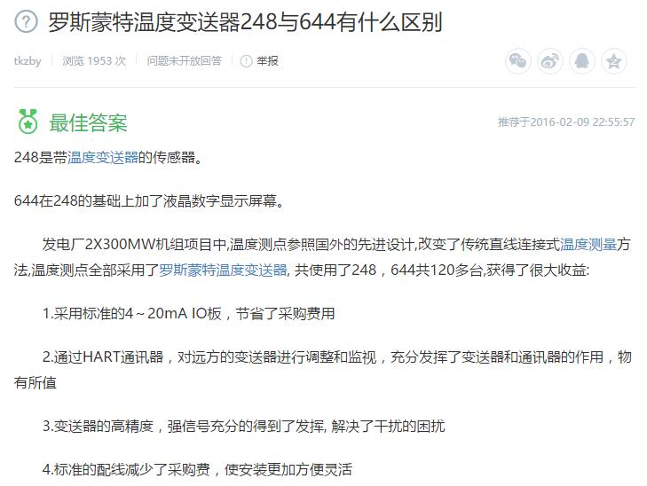 羅斯蒙特溫度變送器248與644有什么區別