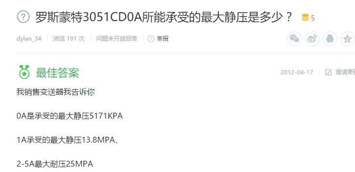 3、羅斯蒙特3051CD0A所能承受的最大靜壓是多少?