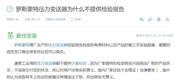 3、羅斯蒙特壓力變送器為什么不提供檢驗報告?