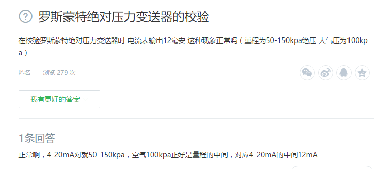 2、羅斯蒙特絕對(duì)壓力變送器的校驗(yàn)(在校驗(yàn)羅斯蒙特絕對(duì)壓力變送器時(shí) 電流表輸出12毫安 這種現(xiàn)象正常嗎(量程為50-150kpa絕壓 大氣壓為100kpa))