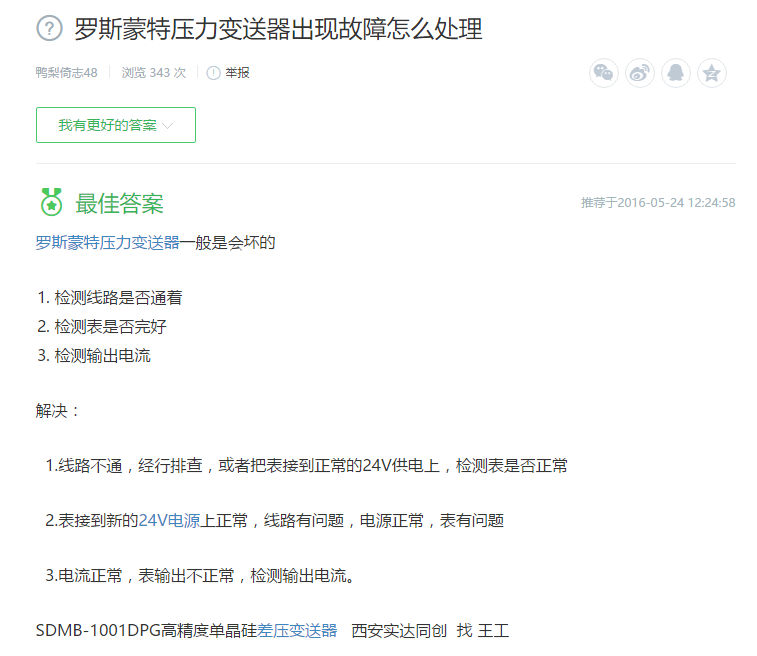 1、羅斯蒙特壓力變送器出現(xiàn)故障怎么處理?