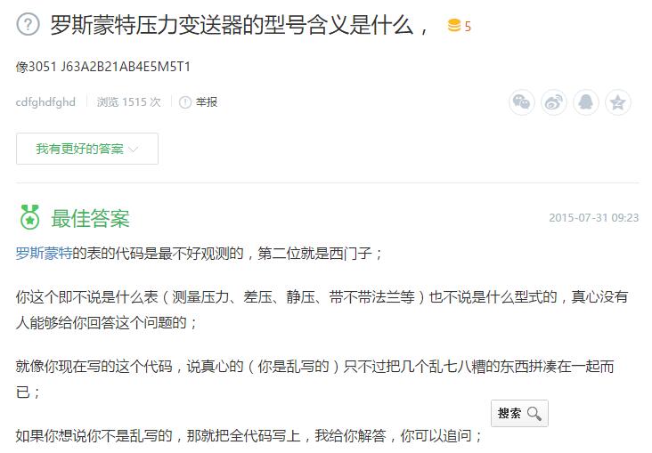 的表的代碼是最不好觀測的,第二位就是西門子;你這個即不說是什么表(測量壓力、差壓、靜壓、帶不帶法蘭等)也不說是什么型式的,真心沒有人能夠給你回答這個問題的;就像你現在寫的這個代碼,說真心的(你是亂寫的)只不過把幾個亂七八糟的東西拼湊在一起而已;如果你想說你不是亂寫的,那就把全代碼寫上,我給你解答,你可以追問;