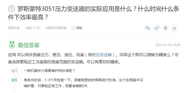 1、羅斯蒙特3051壓力變送器的實(shí)際應(yīng)用是什么?什么時(shí)間什么條件下效率最高?