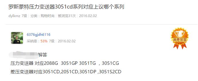 2、羅斯蒙特壓力變送器3051cd系列對應上議哪個系列?