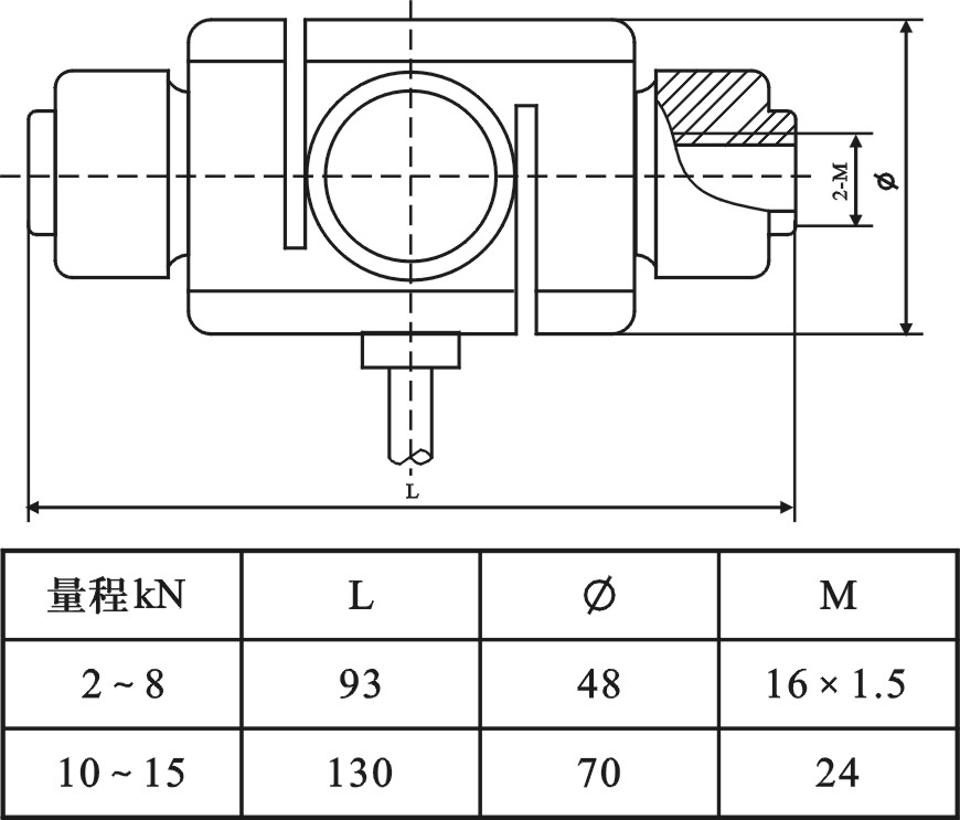 SLK8011箔式拉壓傳感器此系列傳感器用于拉壓式重量和力的測量,也可用于壓式稱重。其特點是利用剪切應力測量,結構簡單牢固,安裝方便,具有抗側向力性能。尤其適用于作為各種料斗秤、吊秤等的一次儀表。 技術指標:量程:0~2、5、10、15kN 結構尺寸: |